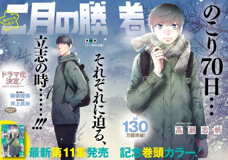 Big Comic Spirit : C'est le magazine seinen hebdo de la Shogakukan. Le magazine a décidé de donner 3 pages couleurs aux mangas suivants : Pretty "Kekkon surutte hontou desu ka - 365 days to the wedding" ,"Ano tsuki ni mukatte ute!" et pour "Nigatsu no Shousha".