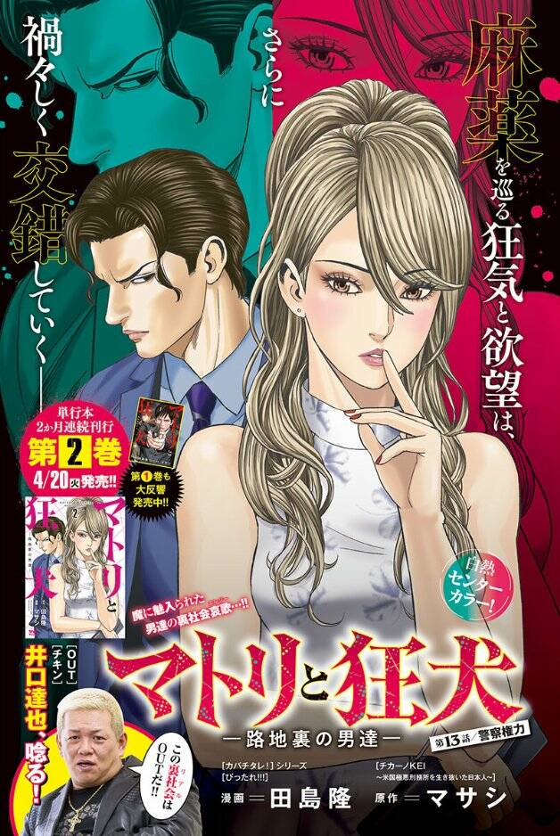 Les pages couleurs de cette semaine sont dédiées pour "Innai keisatsu - Asklepios no hebi" de Sakai Tsutomu et "Matori to kyouken - Rojiura no otoko-tachi" de Tajima Takashi et de Masashi.