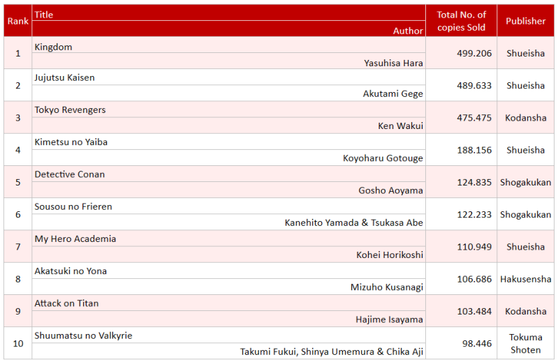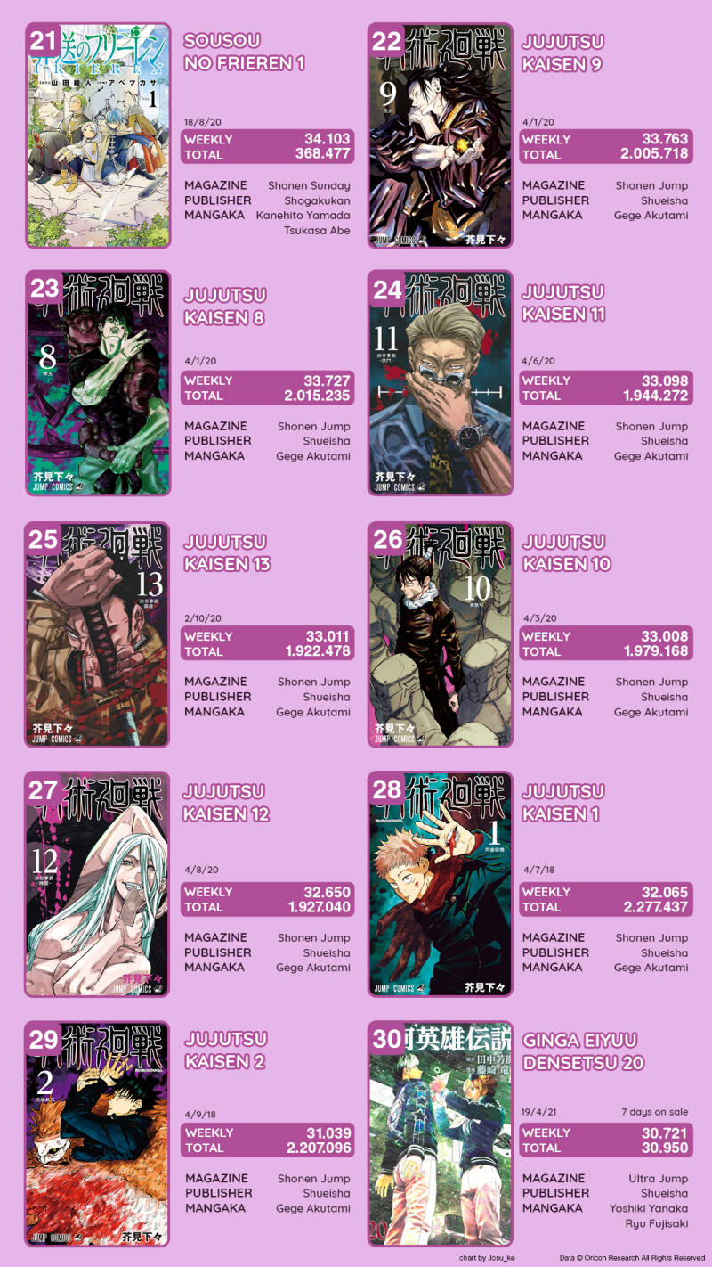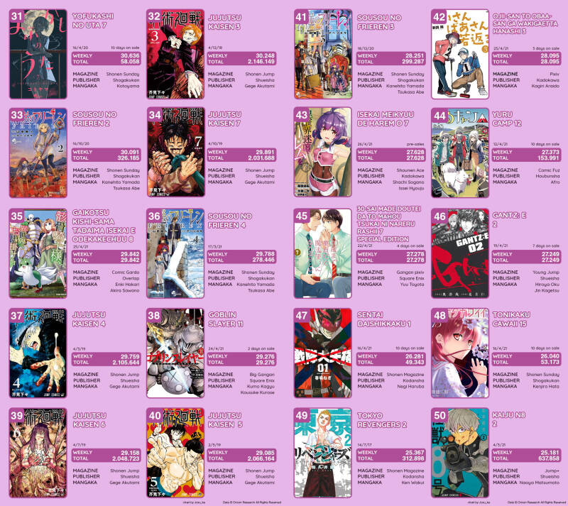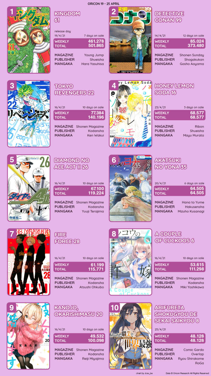 Top Oricon/Shoseki par série de la semaine du 19 au 25 avril 2021
