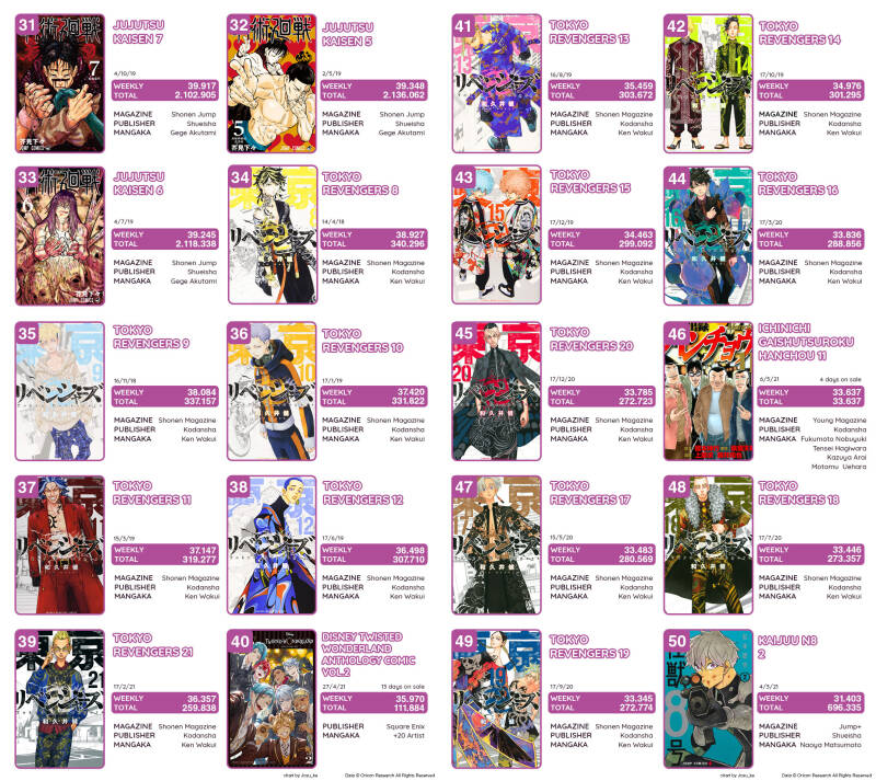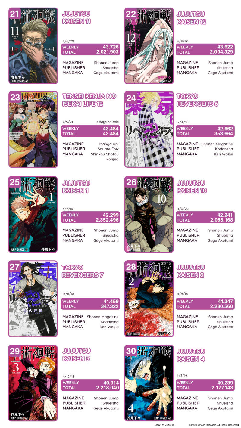 Top Oricon par séries du 3 au 9 mai 2021