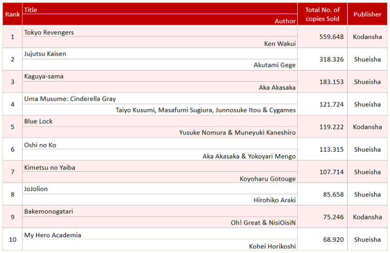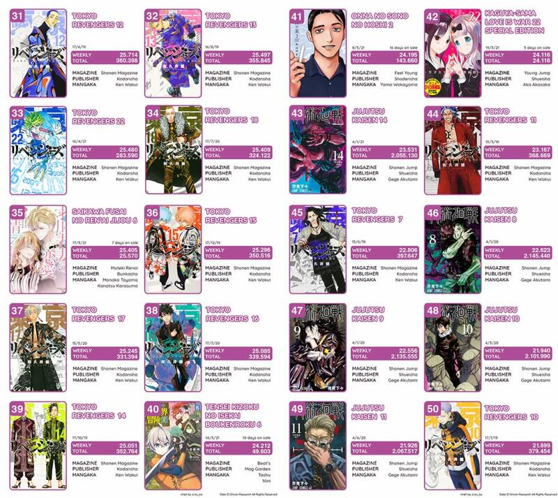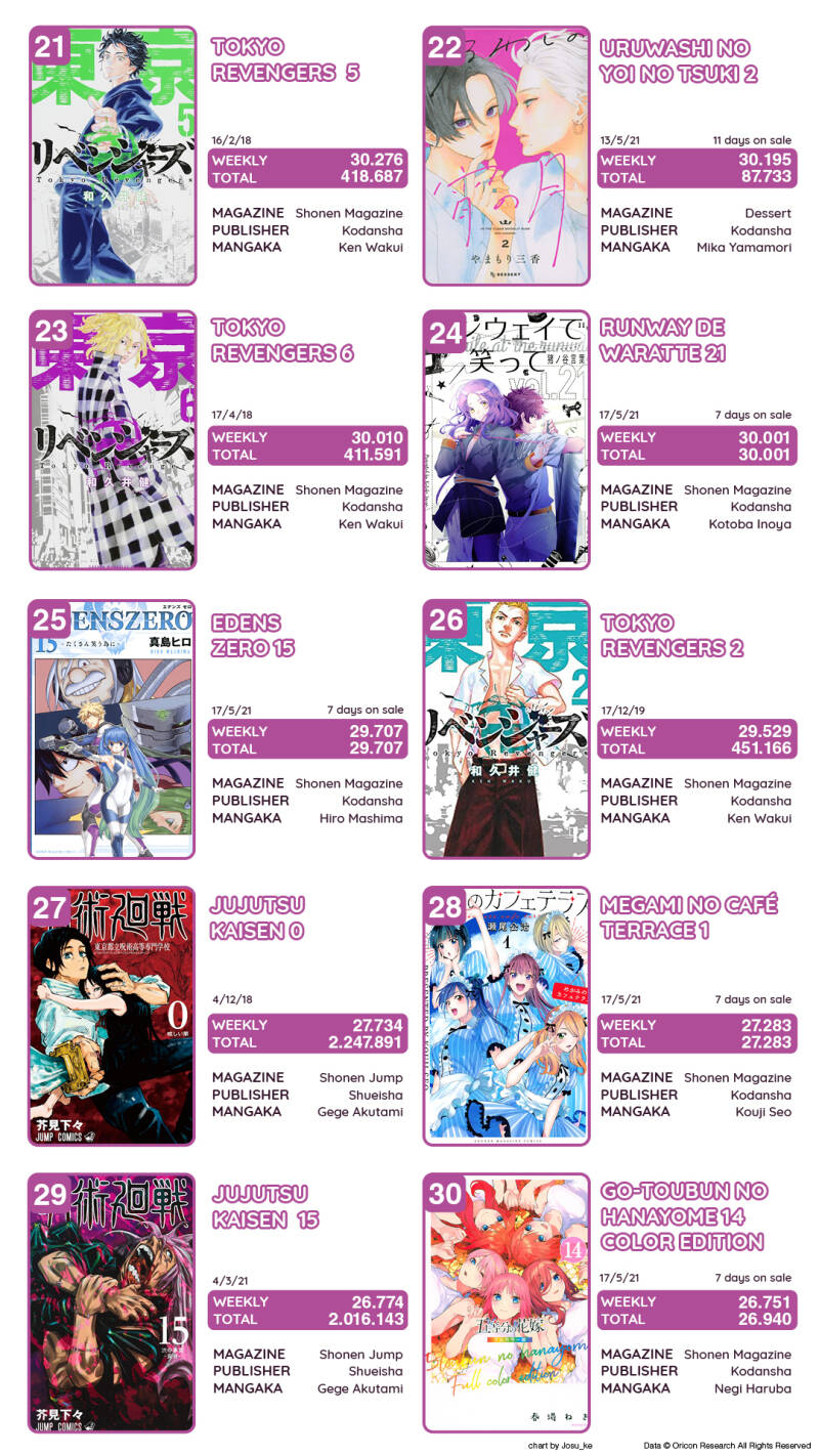 Top Oricon par série du 17 au 23 mai 2021