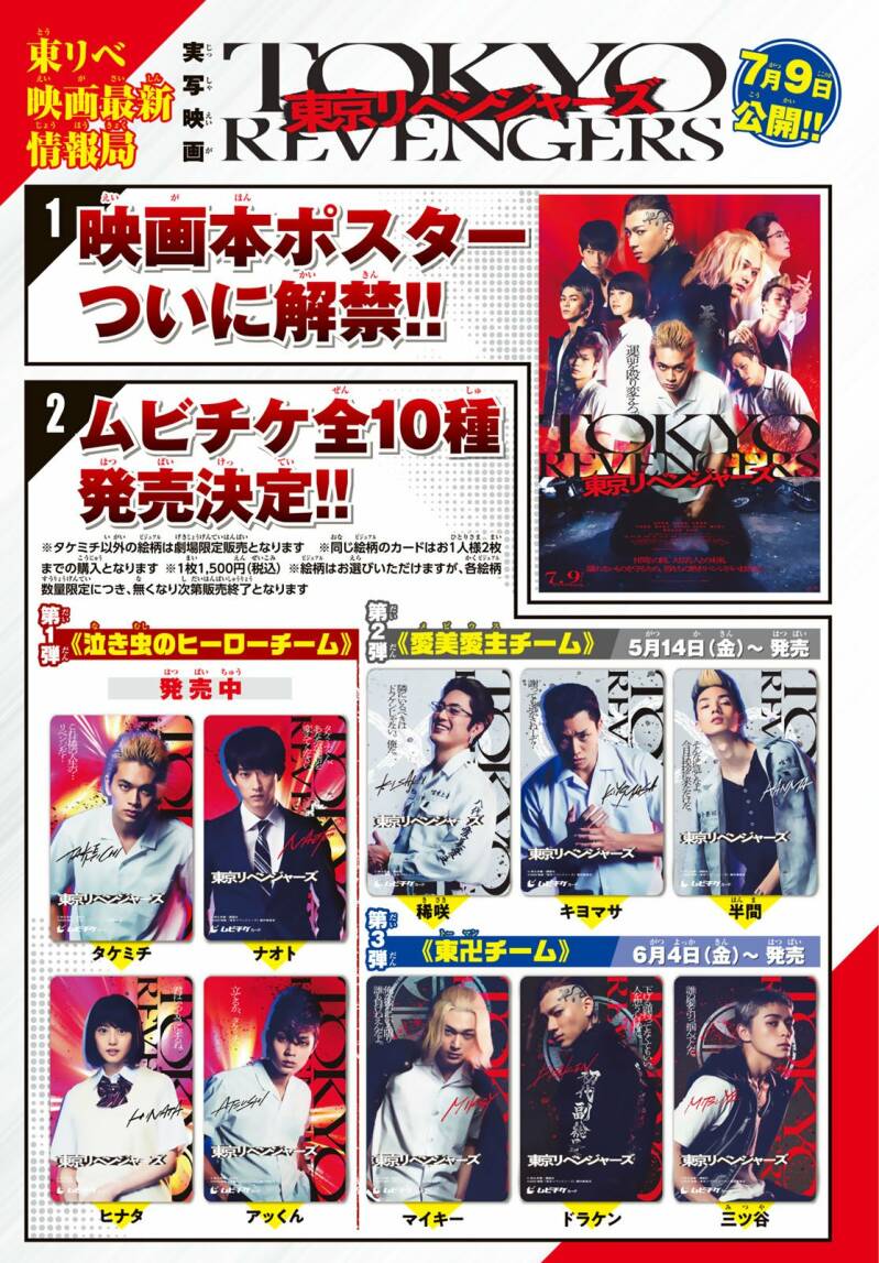 Voici une page couleur et une affiche promotionnelle du film live de Tokyo Revengers.
