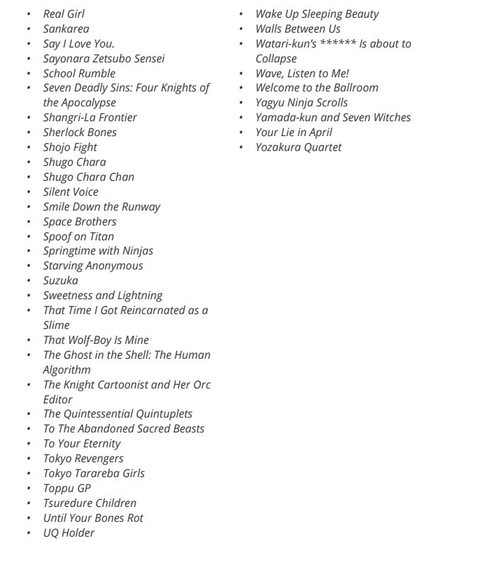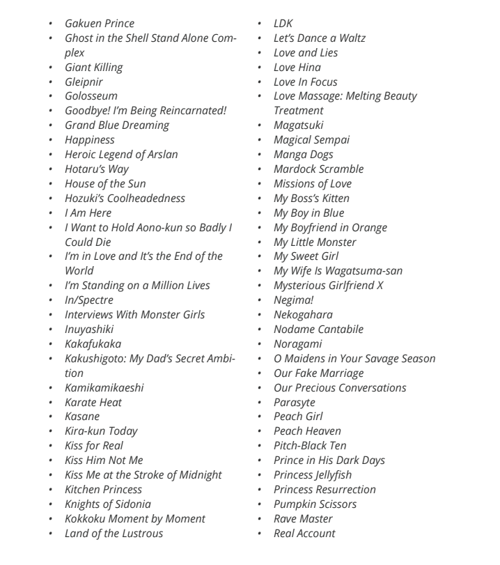 Voici la liste des mangas qu'on pourra lire sur le site.