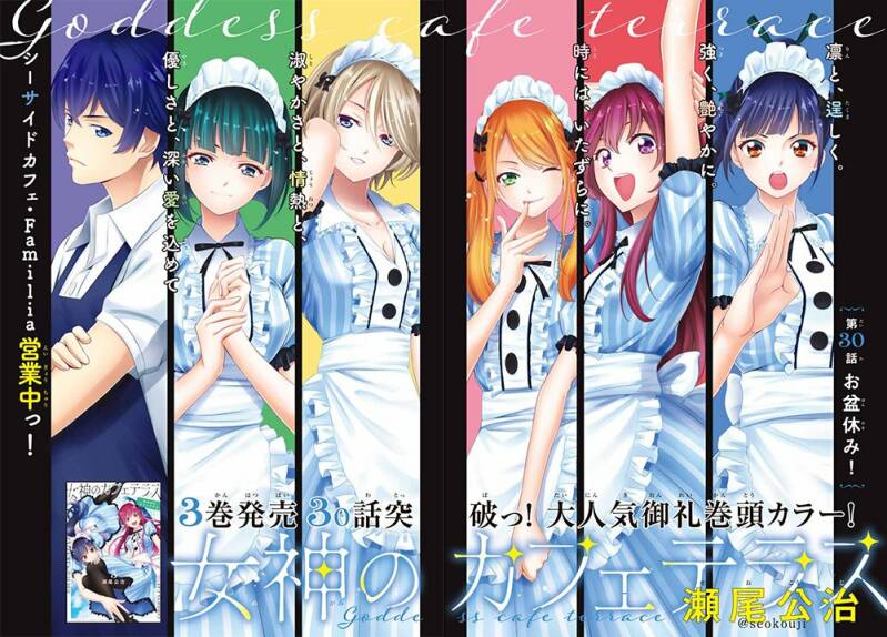Colors Pages : Cette semaine 3 mangas ont eu une page couleur à savoir la nouvelle romcom du WSM Ponkotsu Toshiue Onesan, Megami Cafe Terrace et le One Shot GhostBros.